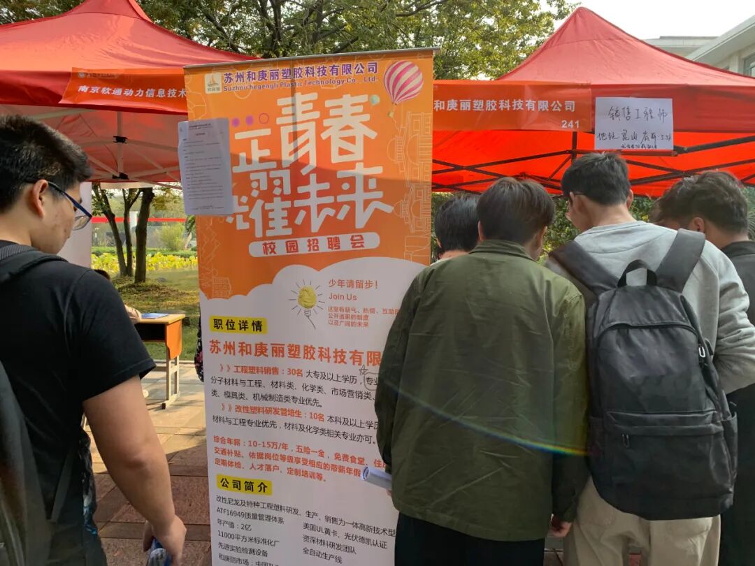 2021年10月27日,苏州和庚丽塑胶科技有限公司参加苏州大学应用技术学院所举办的“江苏省百校联动就业活动暨苏州大学应用技术学院2022届毕业生校园招聘会”。